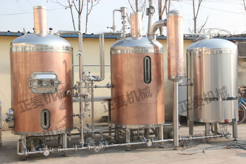 糖化系統(tǒng)是由糖化煮沸鍋、過(guò)濾槽、漩渦沉淀槽及工藝管道組成;糖化煮沸鍋為“蒸汽加熱式;電加熱式;燃?xì)饧訜崾健苯M成。罐體為雙層保溫方式“巖棉或聚氨酯”材料。加熱面積足夠達(dá)到麥汁煮沸蒸發(fā)量,能夠有效阻止熱能耗的外泄。罐體內(nèi)部采用國(guó)際標(biāo)準(zhǔn)不銹鋼精加工而成;外部采用不銹鋼或紫銅鏡面板組成,古樸典雅的外觀造型;即釀出美妙佳釀還有藝術(shù)品的象征。糖化煮沸鍋?lái)敳考友b攪拌系統(tǒng)能使醪液均勻糖化;過(guò)濾槽頂部加裝耕刀系統(tǒng)保證醪液勻速過(guò)濾避免氧化。漩渦沉淀系統(tǒng);采用切線(xiàn)及離心力的作用能夠徹底的分離出多余的蛋白質(zhì)及雜質(zhì),達(dá)到成熟麥汁的純凈度。