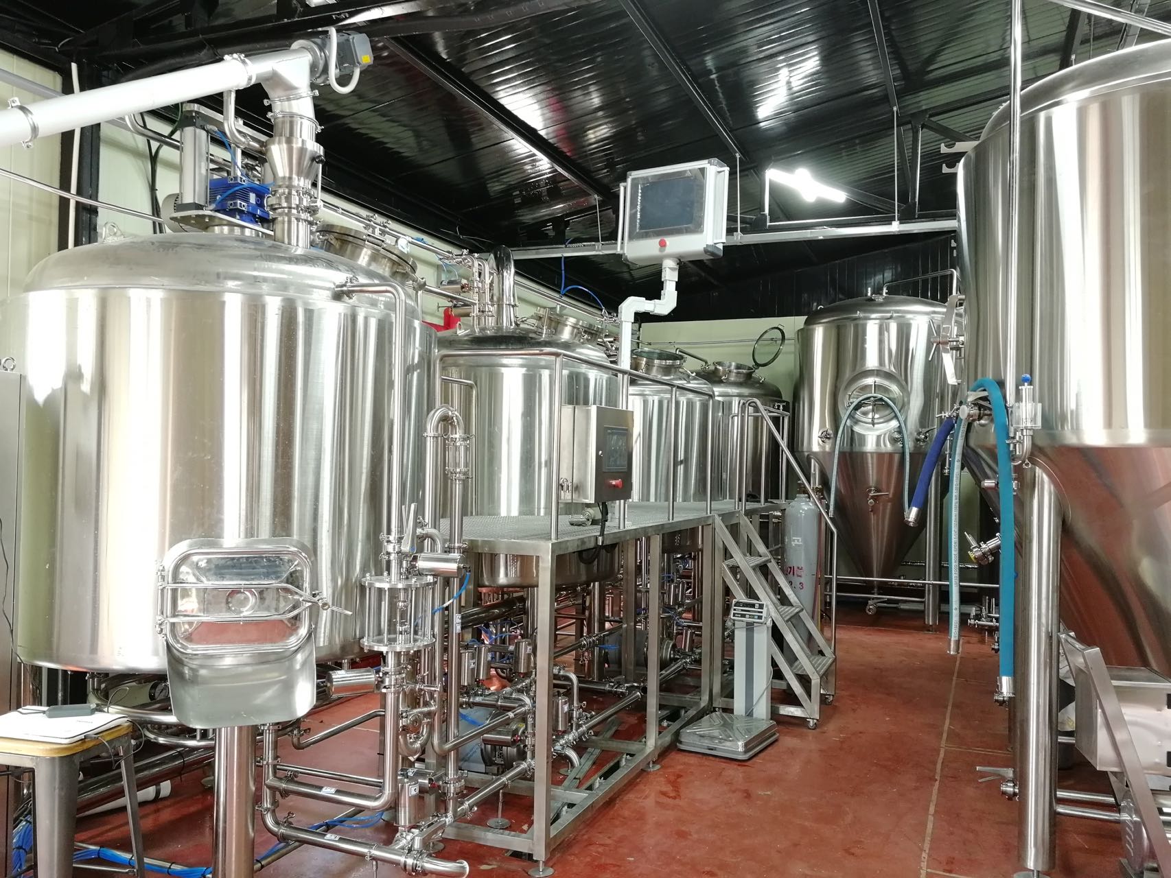 糖化系統(tǒng)是由糖化煮沸鍋、過濾槽、漩渦沉淀槽及工藝管道組成;糖化煮沸鍋為“蒸汽加熱式;電加熱式;燃?xì)饧訜崾健苯M成。罐體為雙層保溫方式“巖棉或聚氨酯”材料。加熱面積足夠達(dá)到麥汁煮沸蒸發(fā)量,能夠有效阻止熱能耗的外泄。罐體內(nèi)部采用國(guó)際標(biāo)準(zhǔn)不銹鋼精加工而成;外部采用不銹鋼或紫銅鏡面板組成,古樸典雅的外觀造型;即釀出美妙佳釀還有藝術(shù)品的象征。糖化煮沸鍋頂部加裝攪拌系統(tǒng)能使醪液均勻糖化;過濾槽頂部加裝耕刀系統(tǒng)保證醪液勻速過濾避免氧化。漩渦沉淀系統(tǒng);采用切線及離心力的作用能夠徹底的分離出多余的蛋白質(zhì)及雜質(zhì),達(dá)到成熟麥汁的純凈度。