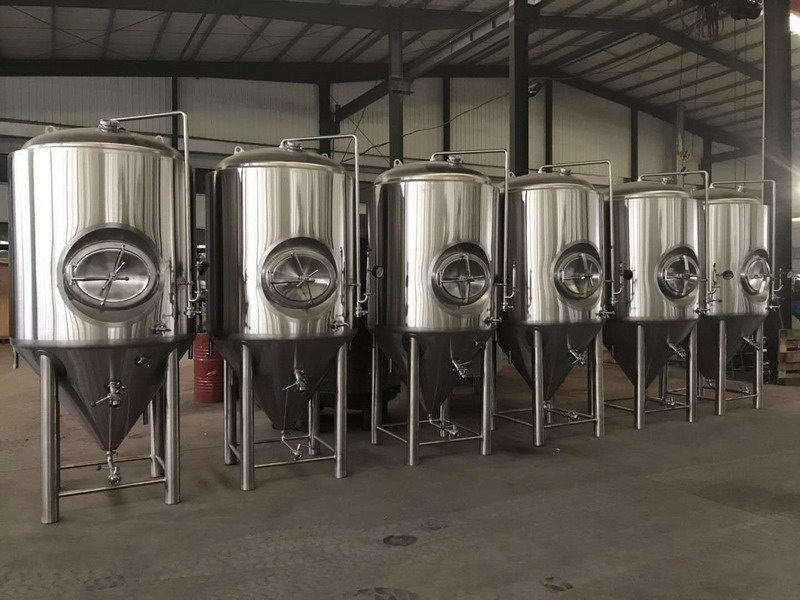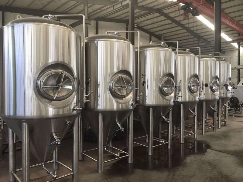 啤酒發(fā)酵系統(tǒng)有發(fā)酵罐、清酒罐、暫存罐組成;發(fā)酵是啤酒生產(chǎn)中極其重要的工藝過程。是一個有酵母參與的復雜的生化反應過程,發(fā)酵罐為錐底圓柱形,罐體具備自身冷卻裝置,可很容易地控制發(fā)酵溫度;罐底為錐形,回收酵母及清洗都很方便;罐體具有CIP清洗系統(tǒng),保證了生產(chǎn)中的衛(wèi)生安全。具備了先進的國際發(fā)酵工程技術,可采用PLC自動控溫技術。全過程控制啤酒發(fā)酵。