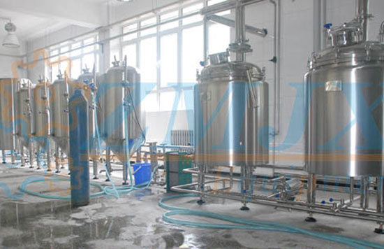 啤酒發(fā)酵系統(tǒng)有發(fā)酵罐、清酒罐、暫存罐組成;發(fā)酵是啤酒生產(chǎn)中極其重要的工藝過程。是一個有酵母參與的復雜的生化反應過程,發(fā)酵罐為錐底圓柱形,罐體具備自身冷卻裝置,可很容易地控制發(fā)酵溫度;罐底為錐形,回收酵母及清洗都很方便;罐體具有CIP清洗系統(tǒng),保證了生產(chǎn)中的衛(wèi)生安全。具備了先進的國際發(fā)酵工程技術,可采用PLC自動控溫技術。全過程控制啤酒發(fā)酵。