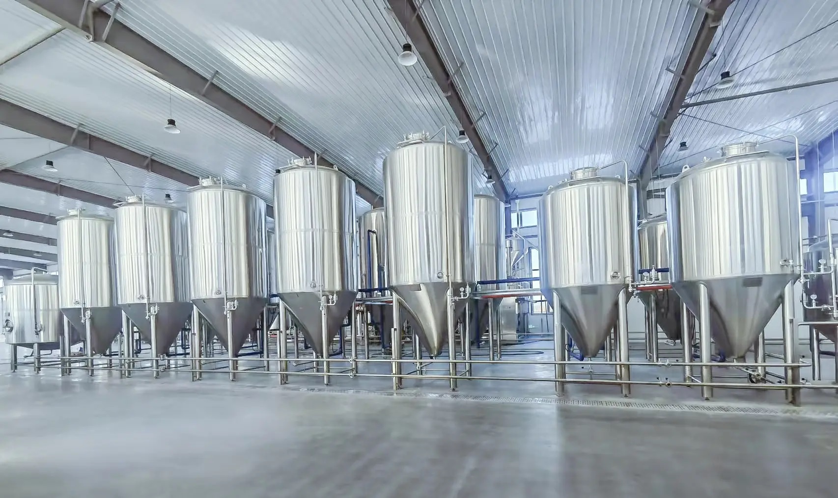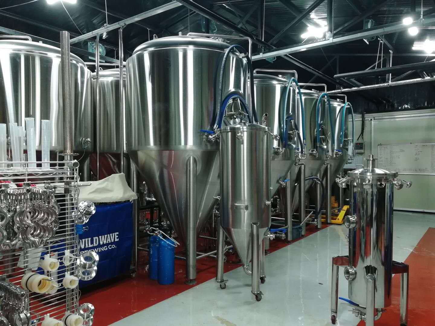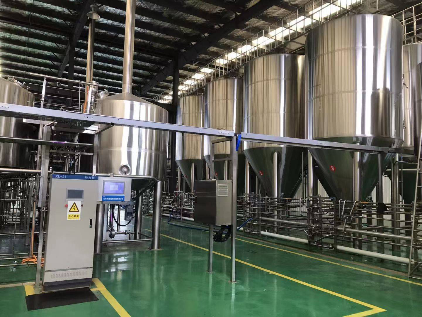 啤酒發(fā)酵系統(tǒng)有發(fā)酵罐、清酒罐、暫存罐組成;發(fā)酵是啤酒生產(chǎn)中極其重要的工藝過程。是一個有酵母參與的復(fù)雜的生化反應(yīng)過程,發(fā)酵罐為錐底圓柱形,罐體具備自身冷卻裝置,可很容易地控制發(fā)酵溫度;罐底為錐形,回收酵母及清洗都很方便;罐體具有CIP清洗系統(tǒng),保證了生產(chǎn)中的衛(wèi)生安全。具備了先進的國際發(fā)酵工程技術(shù),可采用PLC自動控溫技術(shù)。全過程控制啤酒發(fā)酵。